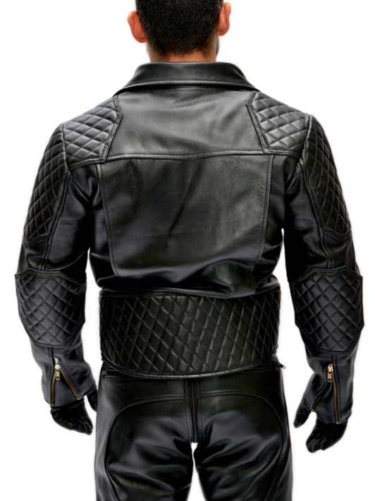 This leather jacket combines timeless elegance with modern design elements, making it a versatile and stylish addition to any wardrobe. The classic leather construction exudes sophistication, while the stitched padding adds a contemporary touch, providing structure and fullness across the shoulders and a unique visual detail at the elbows.